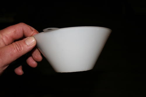 Buy yourself two of the same sized funnels. Now cut one funnel in half and leave the other just as is is. You can cut the funnel with a hacksaw. Clean up the cut edge with sandpaper. The first picture below is the top or "cut" funnel.