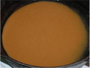 These are pictures of a simple roux I cooked. It is simply put together to show the color changes and final outcome.